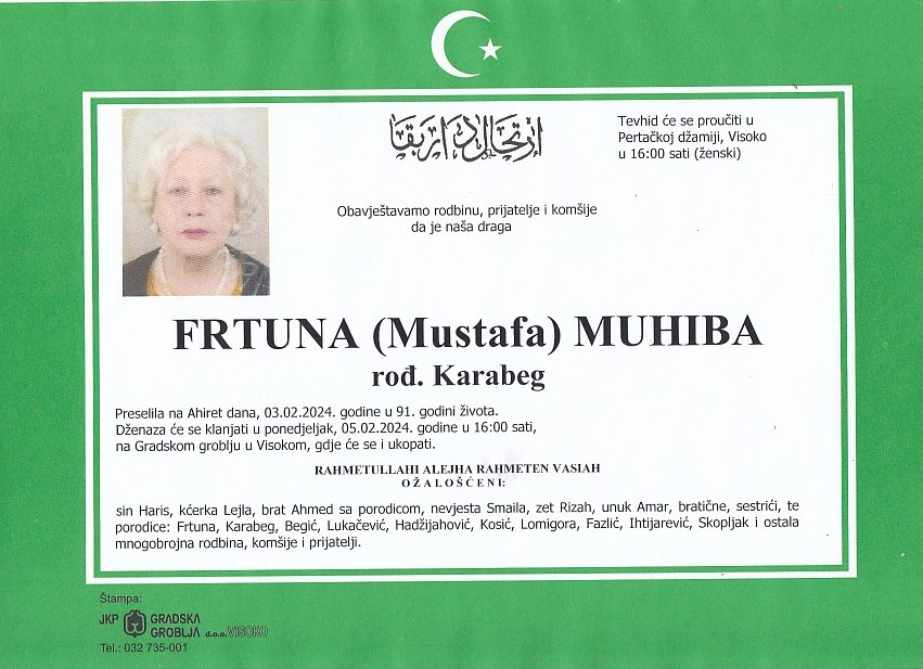 FRTUNA (Mustafa) MUHIBA 05.02.2024. godine u 16:00 sati