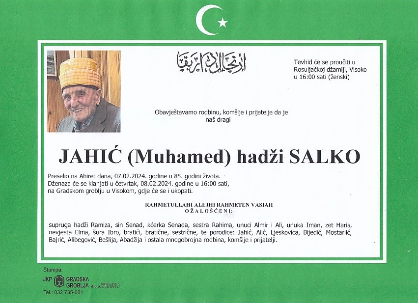 JAHIĆ (Muhamed) SALKO 08.02.2024. godine u 16:00 sati