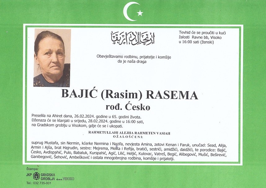 BAJIĆ (Rasim) RASEMA 28.02.2024. godine u 16:00 sati