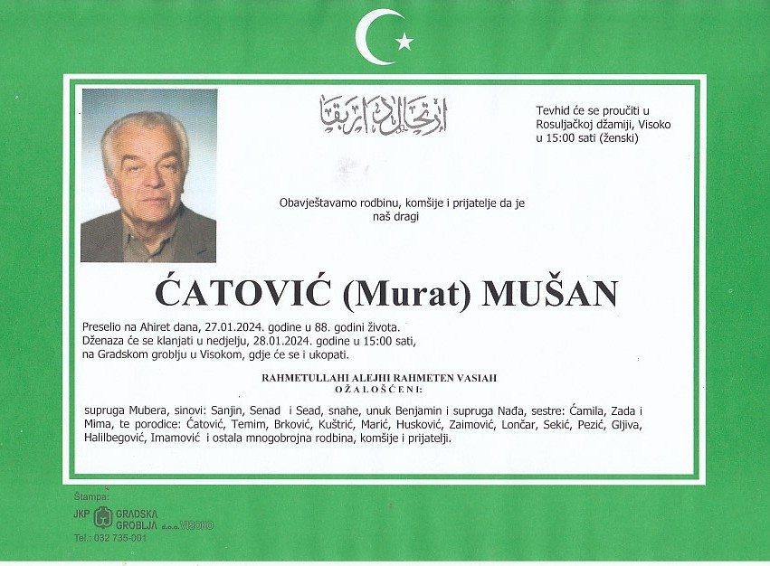 ĆATOVIĆ (Murat) MUŠAN 28.01.2024. godine u 15:00 sati