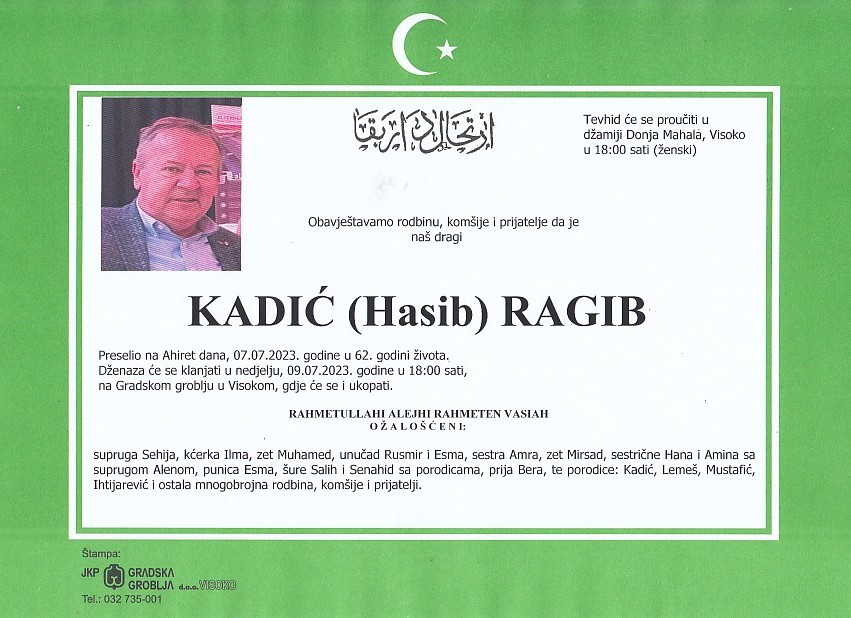 KADIĆ (Hasib) RAGIB 09.07.2023. godine u 18:00 sati