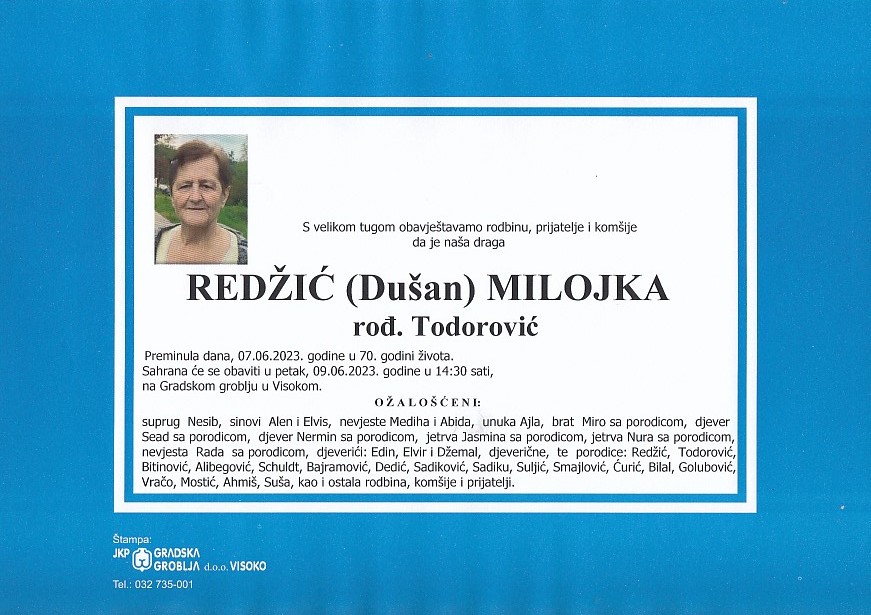 REDŽIĆ (Dušan) MILOJKA 09.06.2023. godine u 14:30 sati