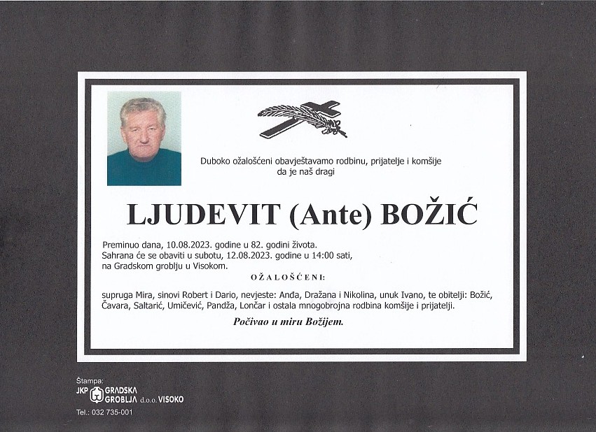 BOŽIĆ (Ante) LJUDEVIT 12.08.2023. godine u 14:00 sati