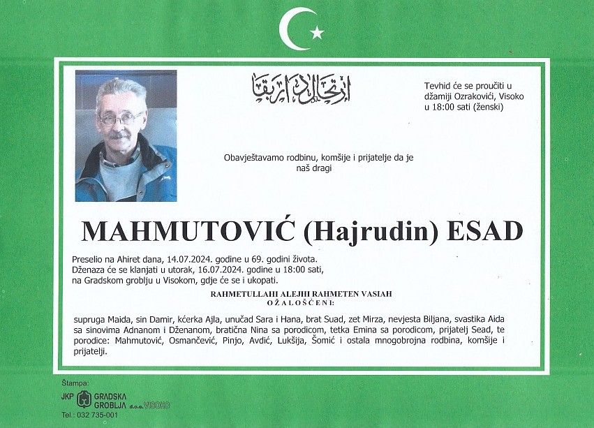 MAHMUTOVIĆ (Hajrudin) ESAD 16.07.2024. godine u 18:00 sati