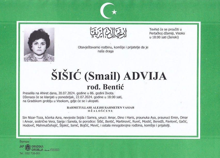 ŠIŠIĆ (Smail) ADVIJA 22.07.2024. godine u 18:00 sati