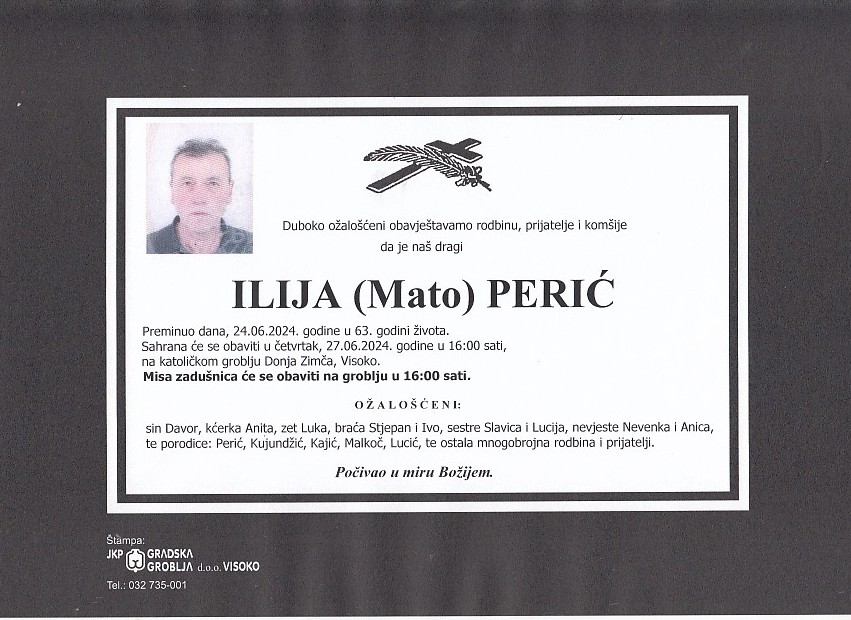 PERIĆ (Mato) ILIJA 27.06.2024. godine u 16:00 sati