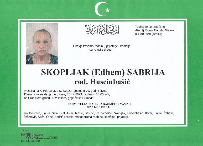 SKOPLJAK (Edhem) SABRIJA 26.12.2023. godine u 15:00 sati