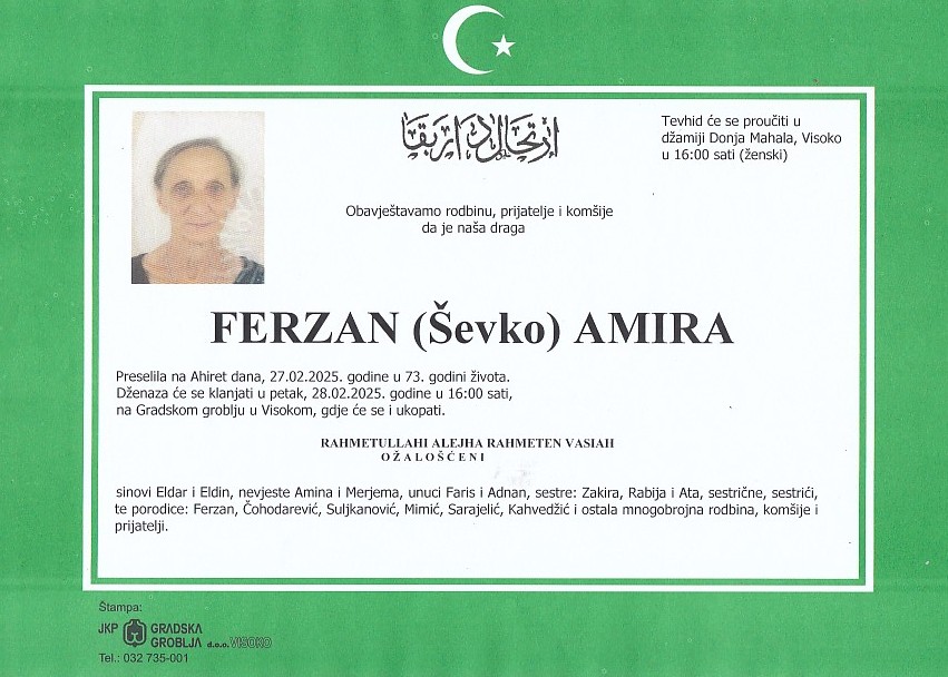 FERZAN (Ševko) AMIRA 28.02.2025. godine u 16:00 sati