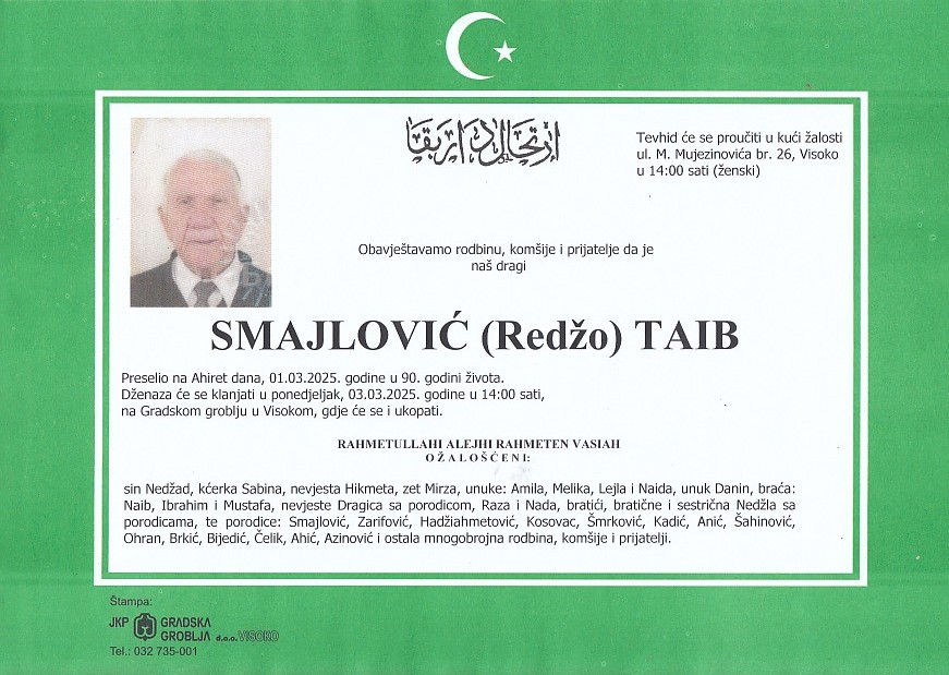 SMAJLOVIĆ (Redžo) TAIB 03.03.2025. godine u 14:00 sati