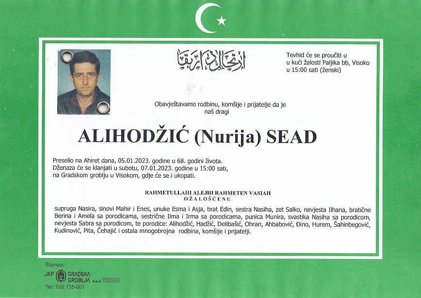 ALIHODŽIĆ (Nurija) SEAD 07.01.2023. godine u 15:00 sati