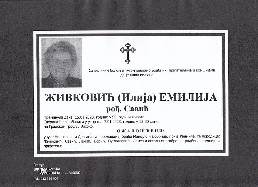 ŽIVKOVIĆ (Ilija) EMILIJA 17.01.2023. godine u 12:30 sati