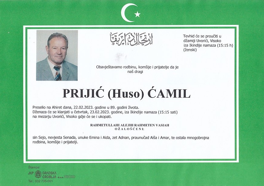PRIJIĆ (Huso) ĆAMIL 23.02.2023. godine u 15:15 sati