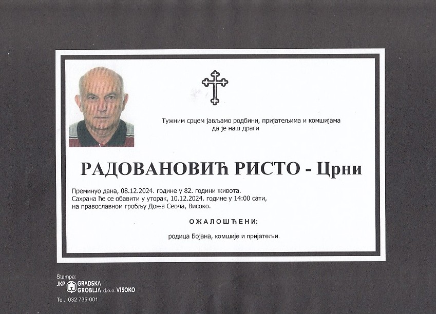 RADOVANOVIĆ RISTO 10.12.2024. godine u 14:00 sati