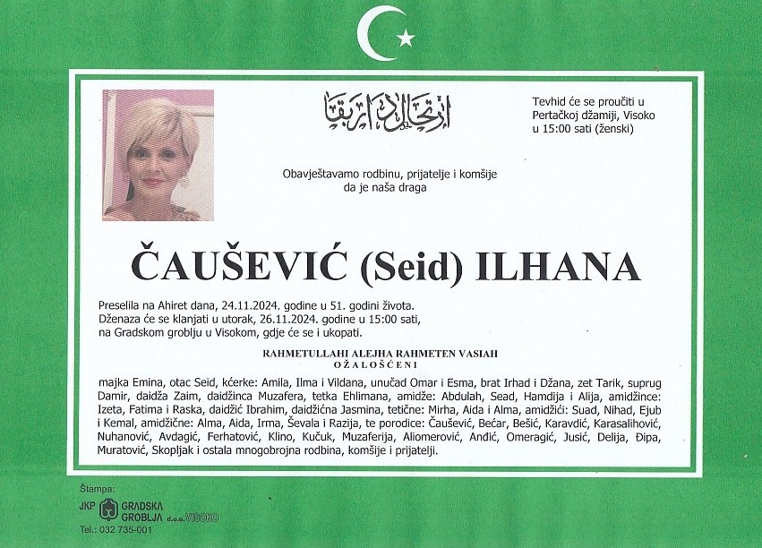 ČAUŠEVIĆ (Seid) ILHANA 26.11.2024. godine u 15:00 sati