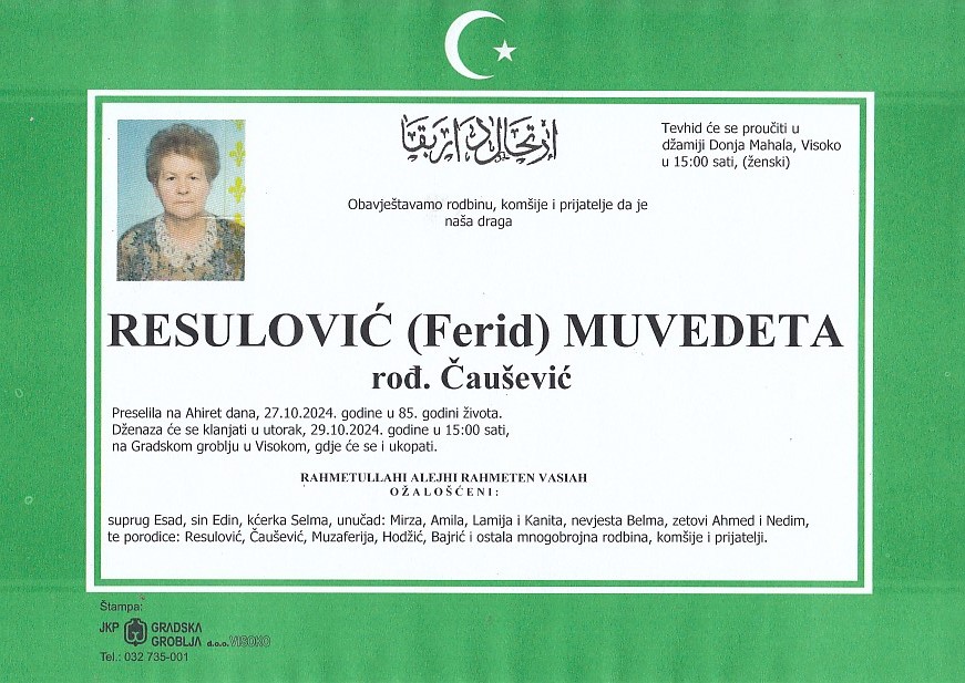 RESULOVIĆ (Ferid) MUVEDETA 29.10.2024. godine u 15:00 sati