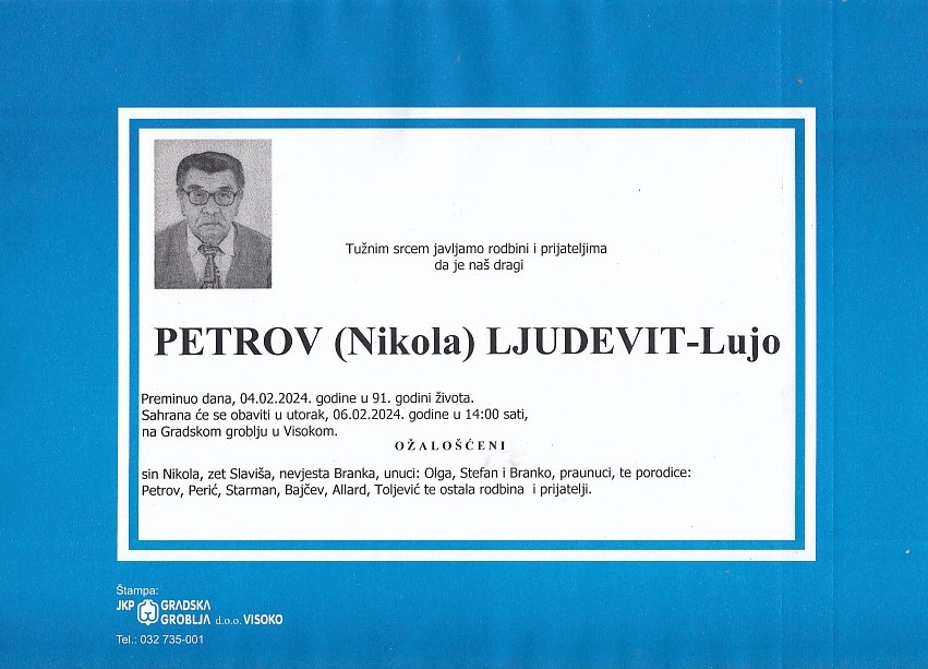 PETROV (Nikola) LJUDEVIT 06.02.2024. godine u 14:00 sati
