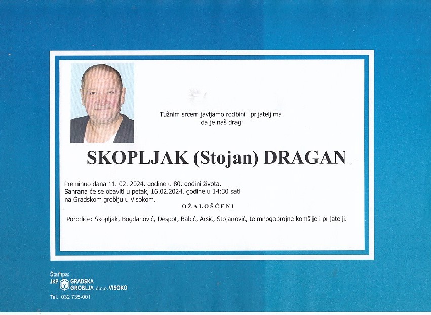 SKOPLJAK (Stojan) DRAGAN 16.02.2024. godine u 14:30 sati