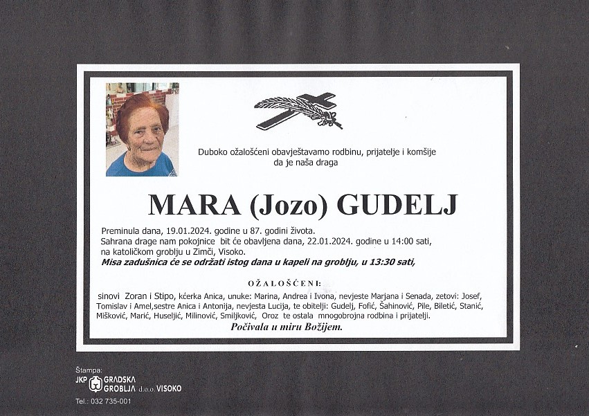 GUDELJ (Jozo) MARA 22.01.2024. godine u 14:00 sati