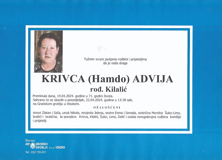 KRIVCA (Hamdo) ADVIJA 22.04.2024. godine u 13:30 sati