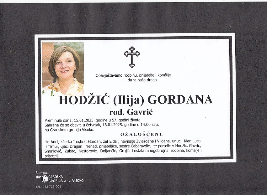 HODŽIĆ (Ilija) GORDANA 16.01.2025. godine u 14:00 sati