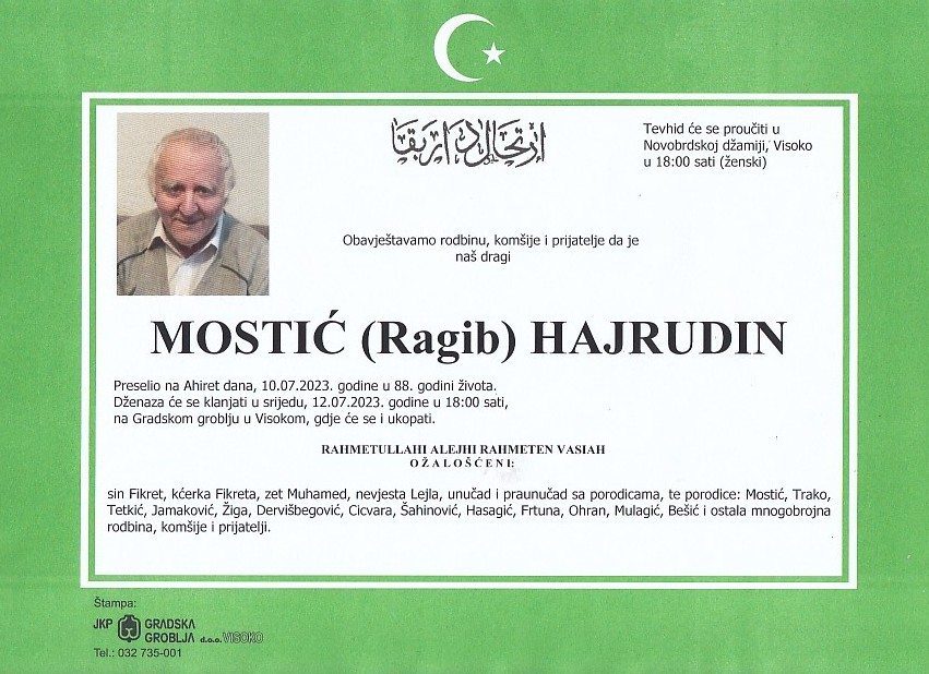 MOSTIĆ (Ragib) HAJRUDIN 12.07.2023. godine u 18:00 sati