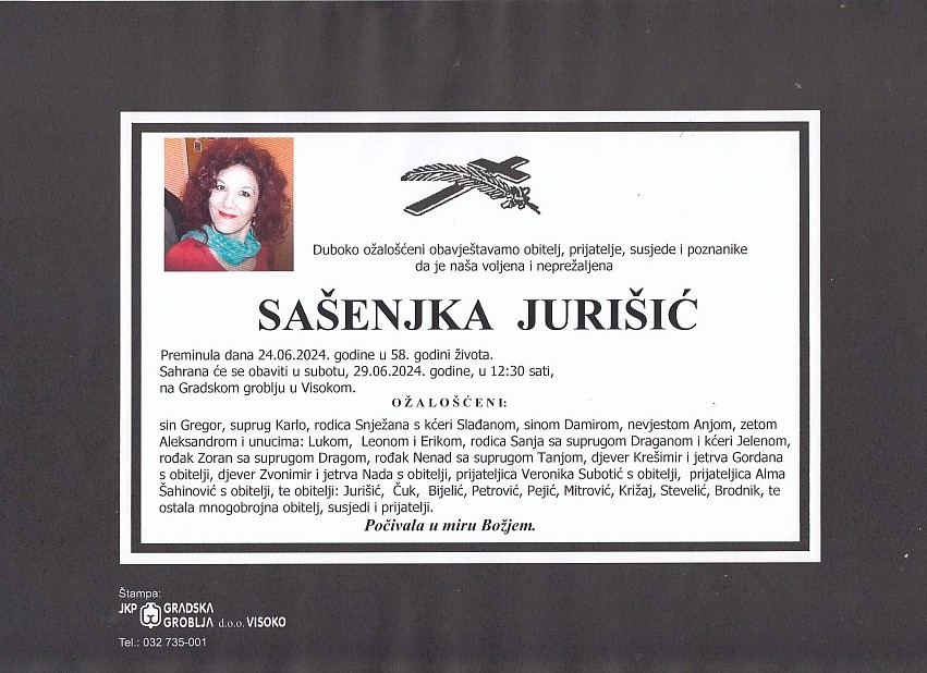 JURIŠIĆ SAŠENJKA 29.06.2024. godine u 12:30 sati