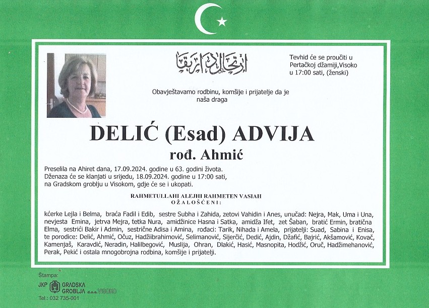 DELIĆ (Esad) ADVIJA 18.09.2024. godine u 17:00 sati