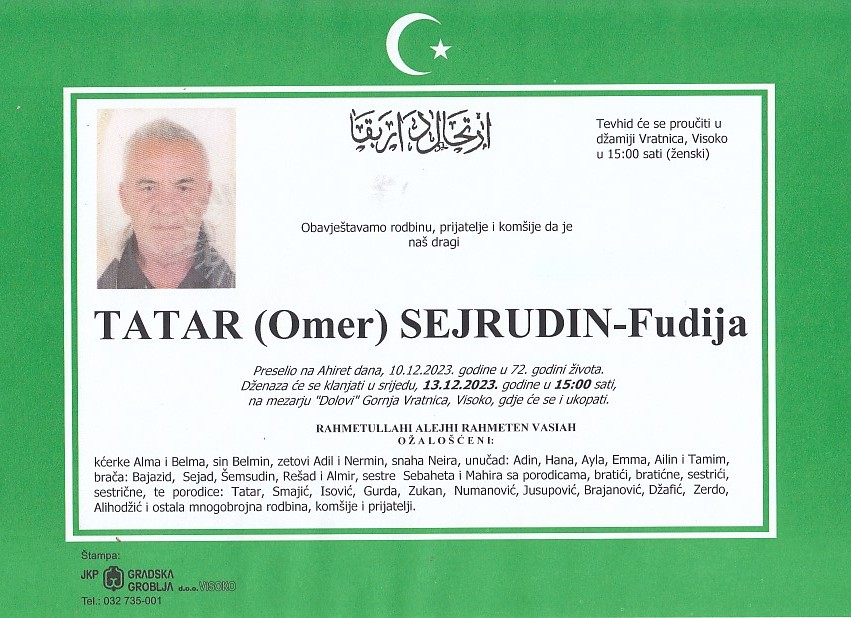 TATAR (Omer) SEJRUDIN 13.12.2023. godine u 15:00 sati