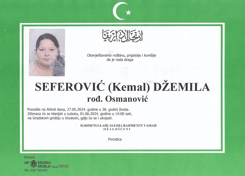 SEFEROVIĆ (Kemal) DŽEMILA 01.06.2024. godine u 14:00 sati