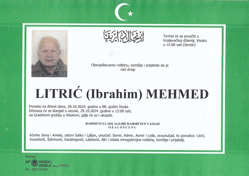 LITRIĆ (Ibrahim) MEHMED 29.10.2024. godine u 15:00 sati