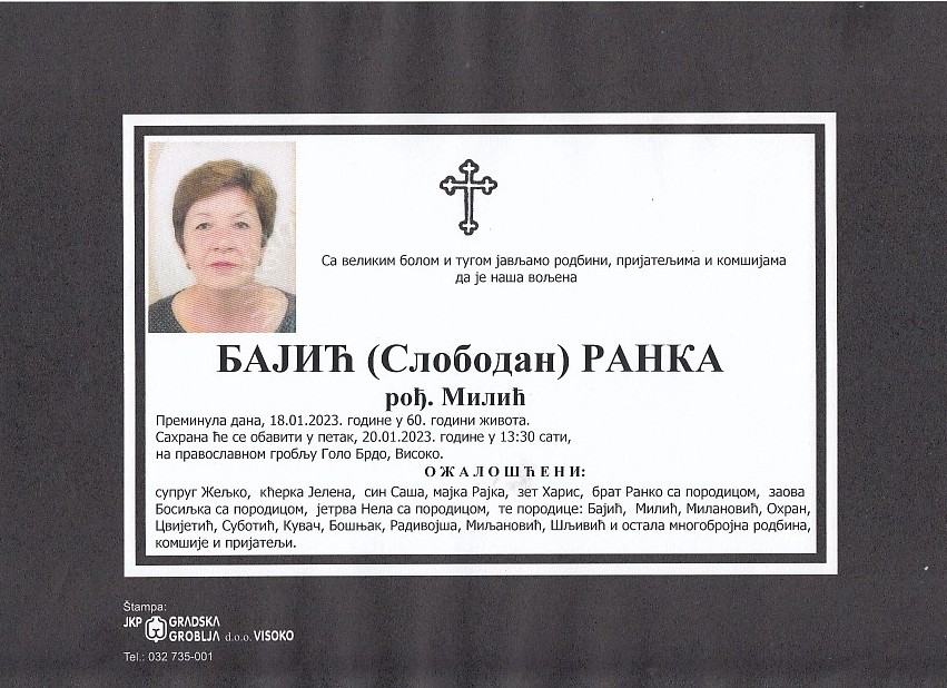 BAJIĆ (Slobodan) RANKA 20.01.2023. godine u 13:30 sati