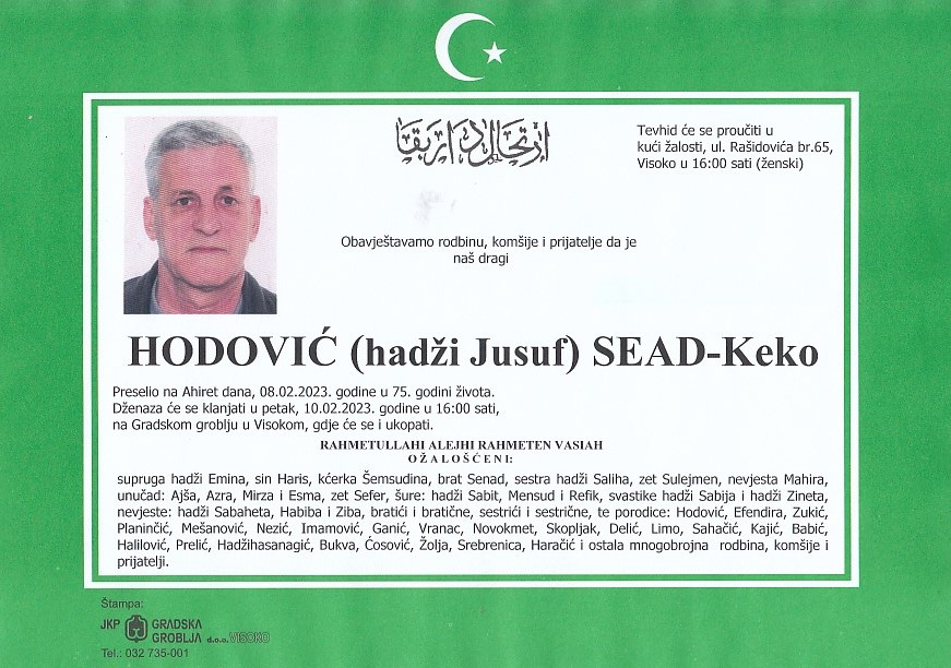 HODOVIĆ (Jusuf) SEAD 10.02.2023. godine u 16:00 sati