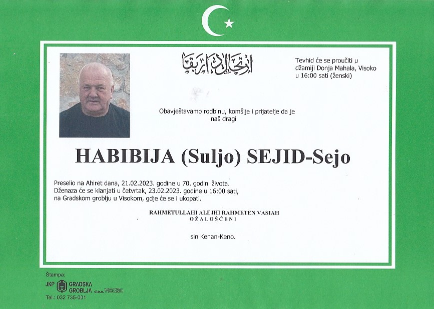 HABIBIJA (Suljo) SEJID 23.02.2023. godine u 16:00 sati