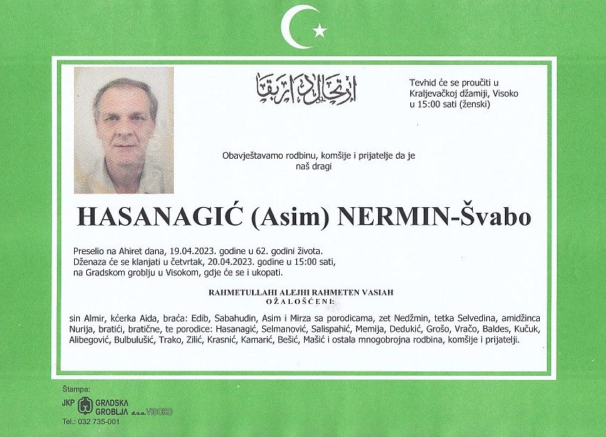 HASANAGIĆ (Asim) NERMIN 20.04.2023. godine u 15:00 sati