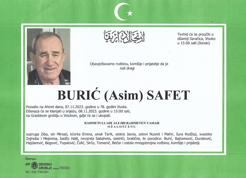 BURIĆ (Asim) SAFET 08.11.2023. godine u 15:00 sati